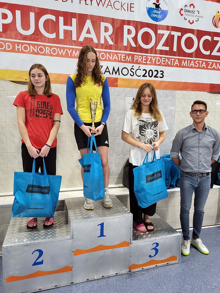 Maja Ryfka ( klasa 3d – wychowawca Anna Wawerek), która tydzień temu została multimedalistką Zimowych Mistrzostw Województwa w Pływaniu, ponownie pokazała wysoką formę sportową. Podczas XVIII Pucharu Roztocza 2023 w Pływaniu zwyciężyła we wszystkich wyścigach, w których startowała ( 50, 100 i 200m stylem dowolnym i 100m stylem zmiennym) zostając najlepszą kraulistką imprezy i zdobywając Puchar Roztocza w klasyfikacji kobiet za sumę punktów we wszystkich startach!