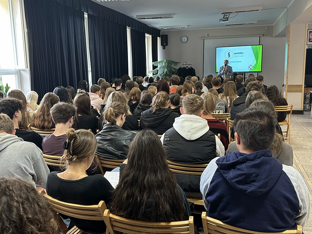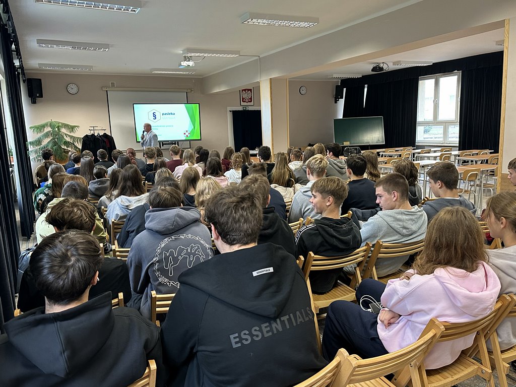 W środę, 15 października 2025 roku, odbyły się w naszej szkole warsztaty z zakresu edukacji prawnej prowadzone przez pracownika Fundacji Rozwoju i Wsparcia – „Pasieka” Pana Adwokata Piotra Kapicę. Celem zajęć było przygotowanie młodzieży do funkcjonowania w społeczeństwie poprzez naukę o podstawowych prawach i obowiązkach, promowanie postaw obywatelskich, zapobieganie przestępczości, wiedza z zakresu funkcjonowania systemu sprawiedliwości oraz możliwościach pozasądowych form rozwiązywania sporów.