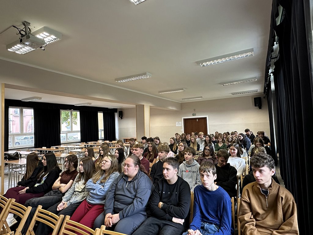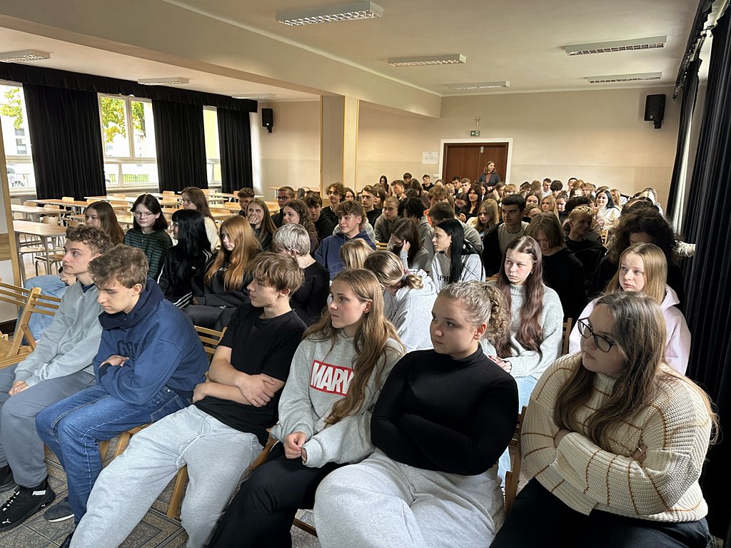 Podczas warsztatów Pan Mecenas skupił się na tym, kiedy i za co młodzież ponosi odpowiedzialność prawną, jakie zachowania mogą mieć realne konsekwencje oraz jak rozsądnie poruszać się w sieci. Wyjaśnił, czym są czyny karalne i jakie środki mogą zostać zastosowane wobec sprawców.