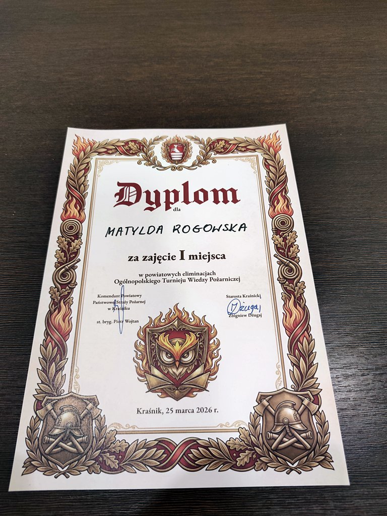 I miejsce w eliminacjach Ogólnopolskiego Turnieju Wiedzy Pożarniczej