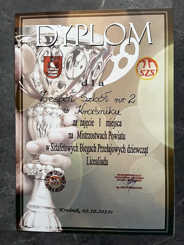W czwartek, 2 października 2025 roku, na Słonecznej Polanie przy Szkole Podstawowej nr 5 w Kraśniku odbyły się Mistrzostwa Powiatu w sztafetowych biegach przełajowych dziewcząt. Rywalizacja została przeprowadzona w formie biegu sztafetowego 6 × 800 metrów.