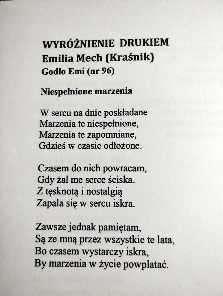 W dniu 27.09.2025r odbyła się uroczysta gala Ogólnopolskiego konkursu literackiego . .”Wysokie rymowanie” w Wysokim Mazowieckim uczennica klasy 3e Emilia Mech zdobyła nagrodę oraz wyróżnienie drukiem. Wiersze po raz trzeci ukazały się w tomiku poezji.