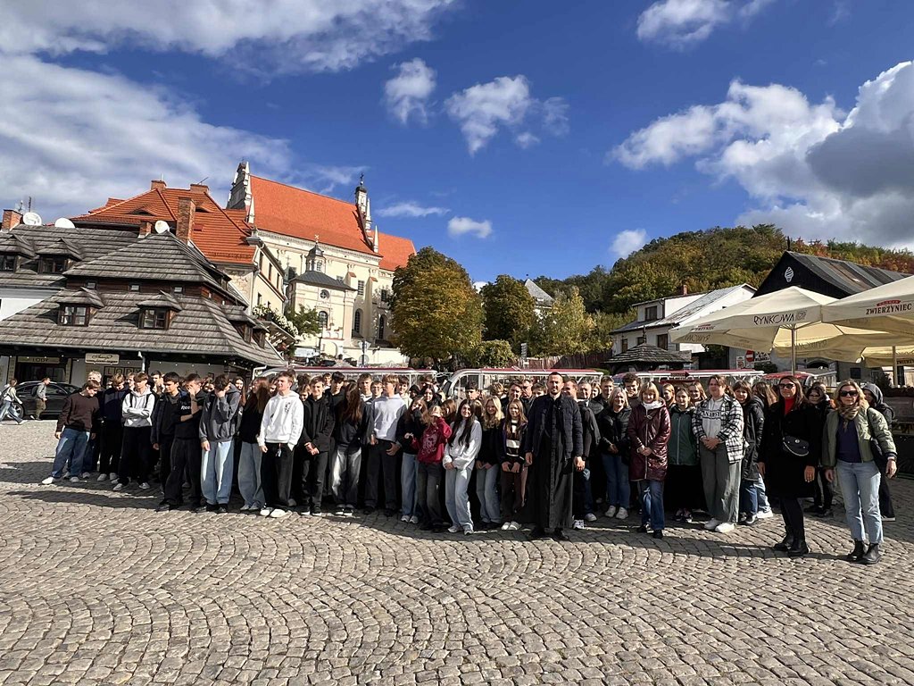 Drugi cel wyjazdu to integracja klas pierwszych. Takie zadanie spełnił pobyt w Kazimierzu Dolnym – malowniczo położonym miasteczku nad Wisłą. W programie był spacer po rynku, wejście na wzgórze z ruinami zamku i Górę Trzech Krzyży, wizyta w kościele farnym p.w. św. Jana Chrzciciela i św. Bartłomieja oraz klasztorze oo. Reformatów nazywanym polskim Nazaretem. „Serce” tej ostatniej świątyni stanowi bowiem obraz Matki Bożej Kazimierskiej ukazujący Zwiastowanie. Zabytki te świadczą o ambicjach, mentalności i stylu życia oraz o religijności minionych pokoleń. Pobyt w tym, kiedyś wielokulturowym, miasteczku uczy nie tylko wrażliwości na piękno, ale także tolerancji i otwartości na różnorodność.
