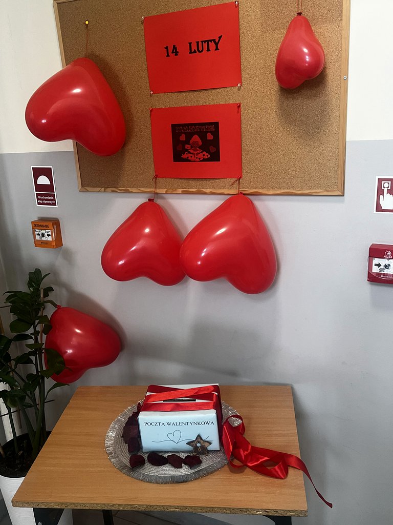 Corocznie przypadające 14 lutego „Walentynki” zwyczajowo związane są z czczeniem pamięci św. Walentego, który jest patronem zakochanych. W związku z tym świętem internat udekorowano w walentynkowe serca.